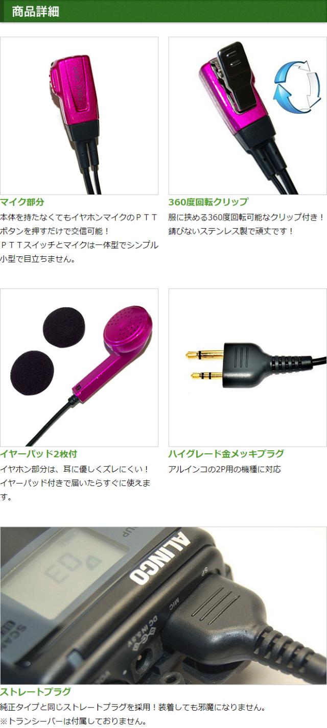 アルインコ イヤホンマイク ALINCO 2ピン用 トランシーバー用 インカムマイク 【限定色メタリックピンク】DJ-P9 DJ-P11 DJ-P20 DJ-PA20 DJ-CH20B DJ-CH27B DJ-P24 DJ-A27 DJ-P35D DJ-P21 DJ-CH1 DJ-CH9 DJ-CH11 DJ-PX31 DJ-R100D用【EME-34A EME-52A互換】