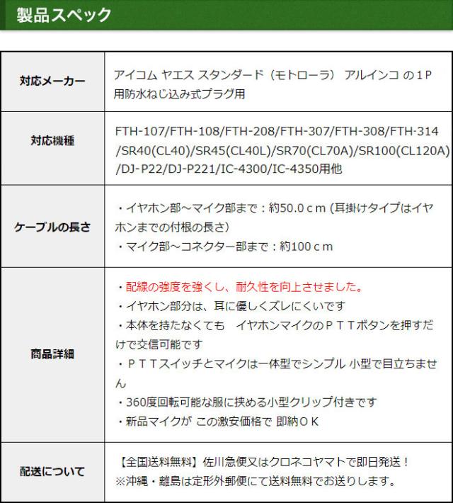 アイコム ヤエス スタンダード アルインコ イヤホンマイク 1ピン防水ねじ込み式プラグ インカムマイク IC-4300 IC-4350 FTH-107 FTH-108 FTH-208 FTH-307 FTH-308 FTH-314 SR-40 SR-45 SR-70 SR-100 DJ-P221用 EME-36A HM-177PI SSM-59互換品
