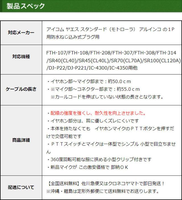 アイコム ヤエス スタンダード アルインコ イヤホンマイク ハイグレードカールコード 5個セット インカムマイク 1ピン防水ねじ込み式 IC-4300 IC-4350 FTH-108 FTH-208 FTH-307 FTH-308 FTH-314 SR-40 SR-45 SR-70 SR-100 DJ-P221用 EME-36A HM-177PI SSM-59互換品