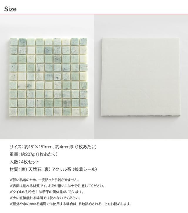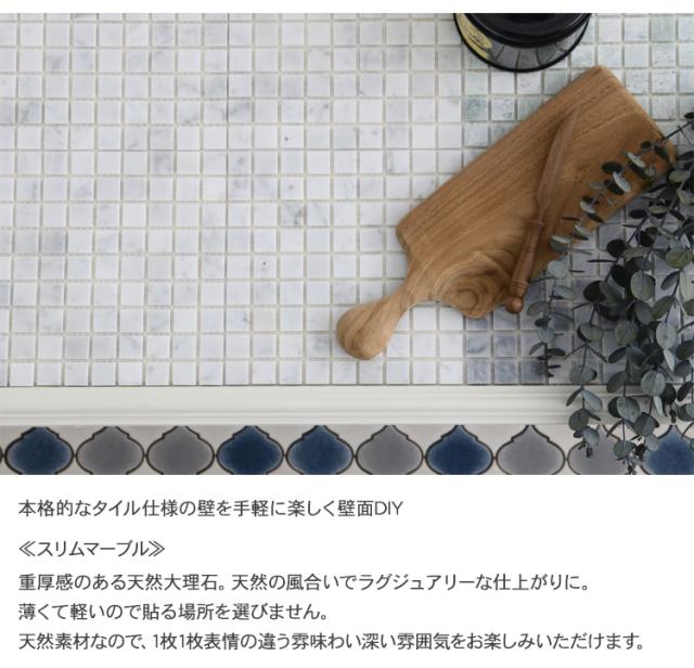 モザイクタイル シート スリムマーブル (4枚セット) 大理石 ガラス タイルシール 壁 キッチンタイル カフェ 店舗 インテリア キッチン リビング 寝室 玄関 テーブル 浴室 洗面台 トイレ 石材 DIY 屋外 室内 おしゃれ