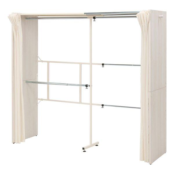萩原 (ハギハラ) 伸縮クローゼット(ホワイト) 棚なし 洗えるカーテン付き VR-7242WS