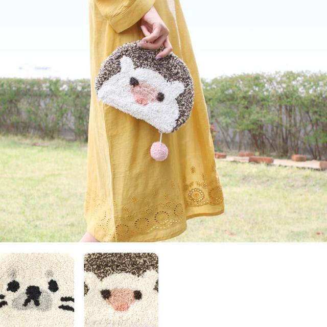 もこもこした素材がキュートなアニマルフェイスのポーチです。