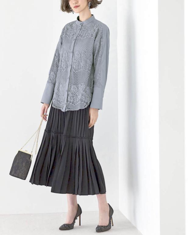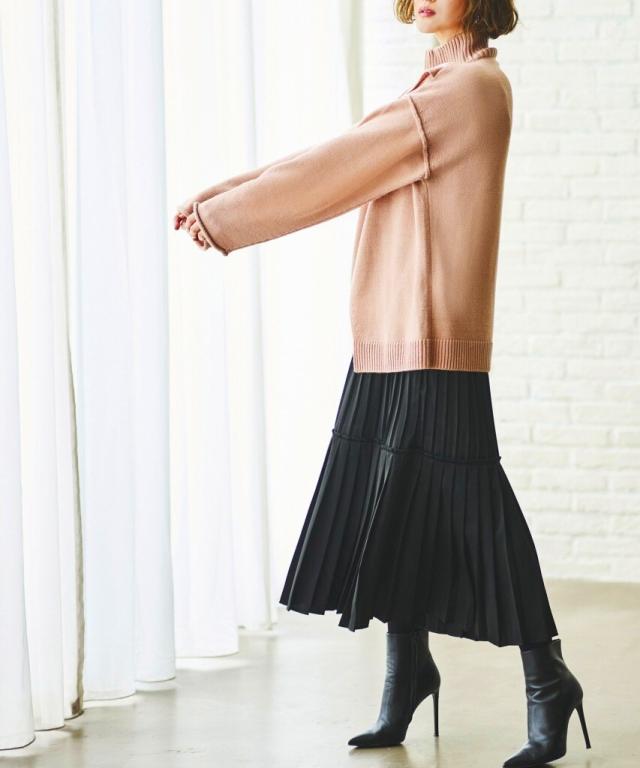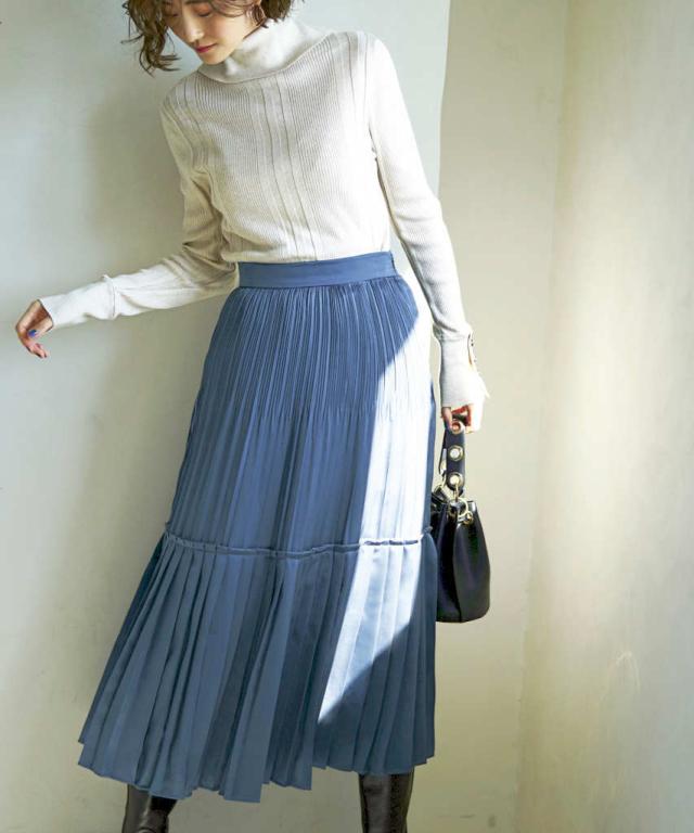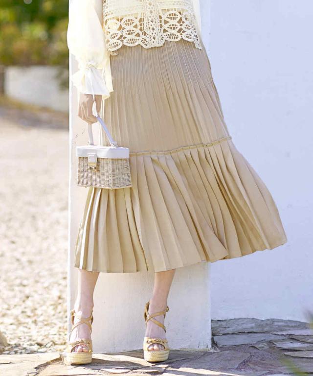 プリーツが女性らしいティアードスカート。