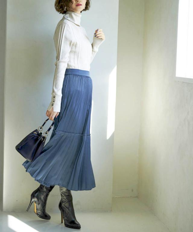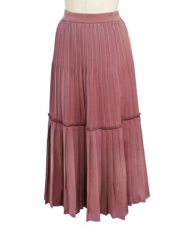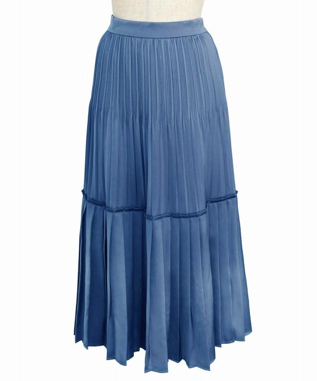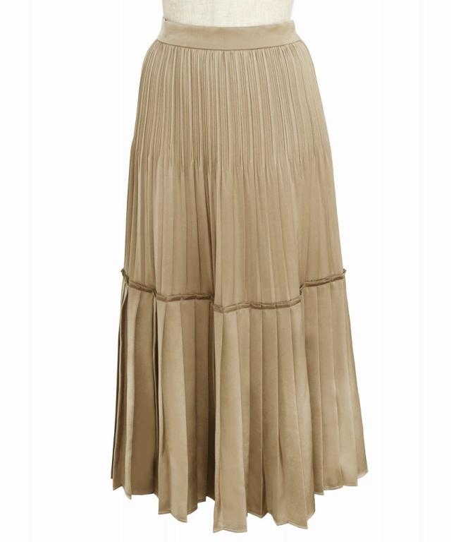 サテンティアードプリーツスカート