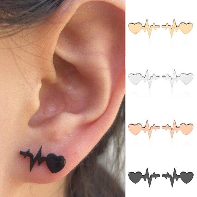ハートが波打つ心電図のようなステンレス素材のスタッドピアス。