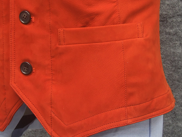 ベスト/ジレ 全面羊革ヌバック オレンジ スペインレザー ラム革 Vネック前開き メンズ ML19214-OG