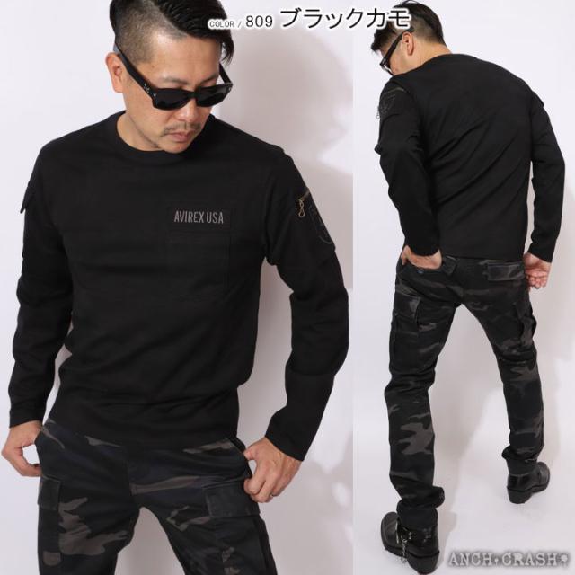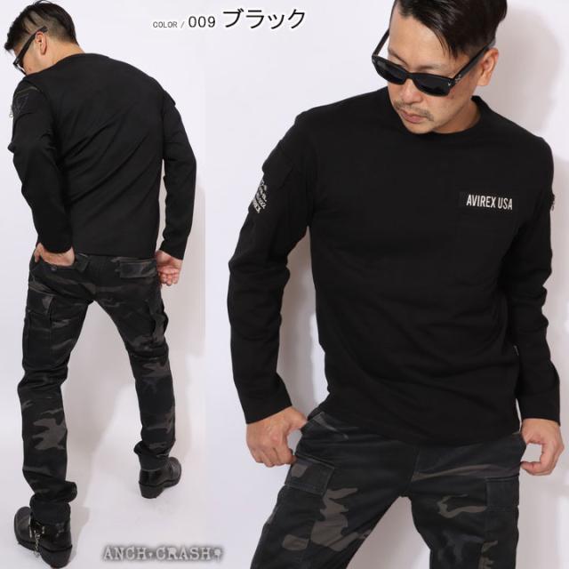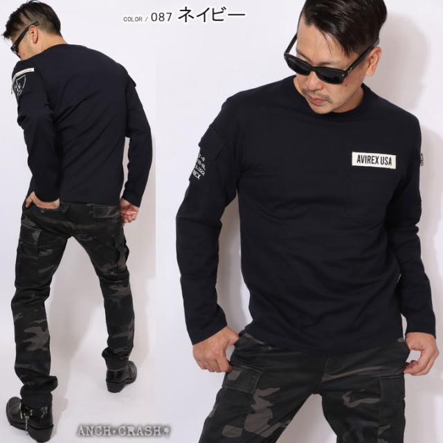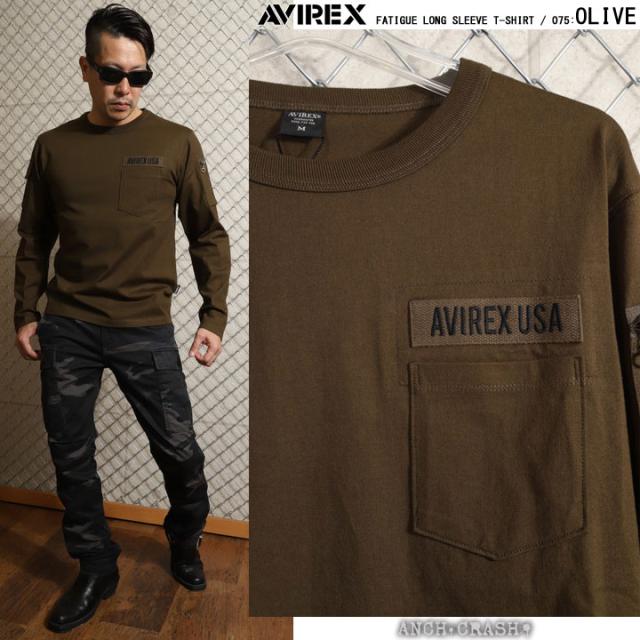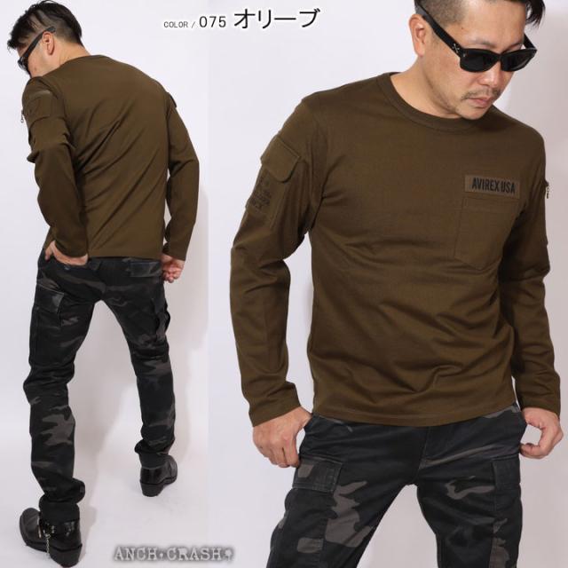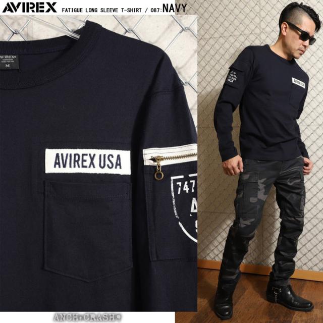 AVIREX アビレックス ファティーグ 長袖 Tシャツ クルーネック ポケット ミリタリー(6113448)アヴィレックス【メール便発送】※日時指定・代引き不可