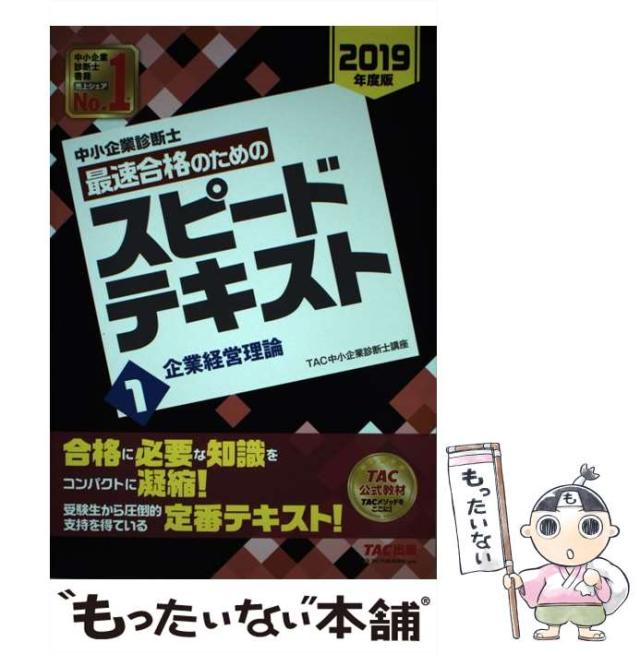 【中古】 中小企業診断士最速合格のためのスピードテキスト 2019年度版1 企業経営理論 / TAC株式会社(中小企業診断士講座) / TAC株式会社出 [単行本(ソフトカバー)]【メール便送料無料】