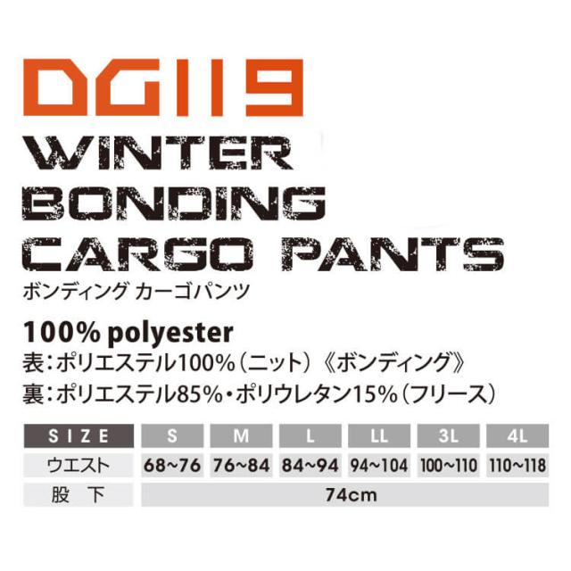 防寒服 ディーグロー D.GROW ボンディングカーゴパンツ DG119 作業服 秋冬 防寒パンツ クロダルマ KURODARUMA