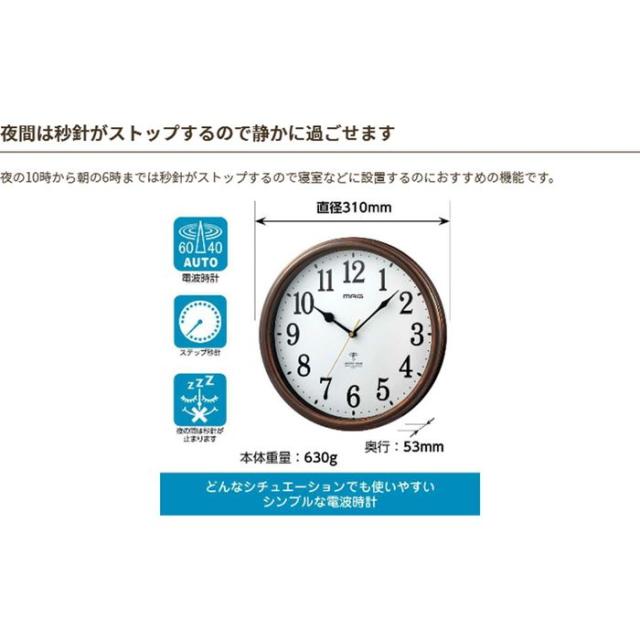 機能:電波自動受信、ステップ秒針、夜間秒針停止機能(午後10時〜午前6時)