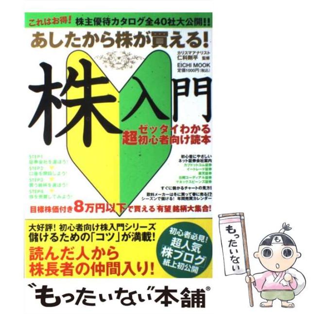 商品名:【中古】 あしたから株が買える!株入門 ゼッタイわかる超初心者向け読本 (Eichi mook) / 仁科 剛平 / 英知出版 [ムック]【メール便送料無料】