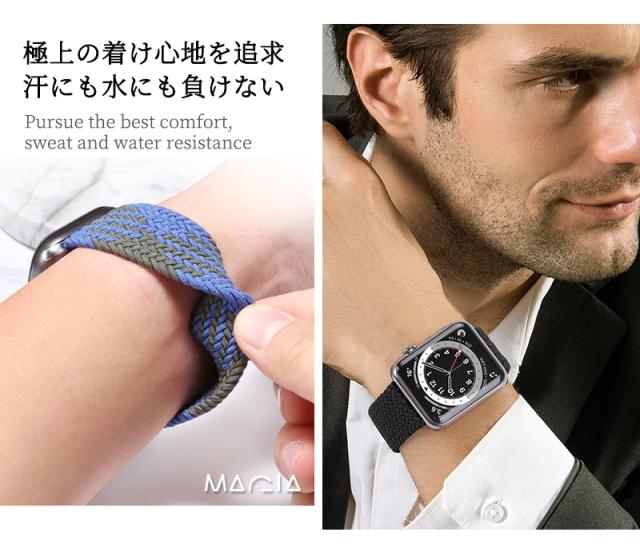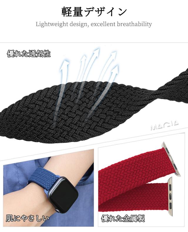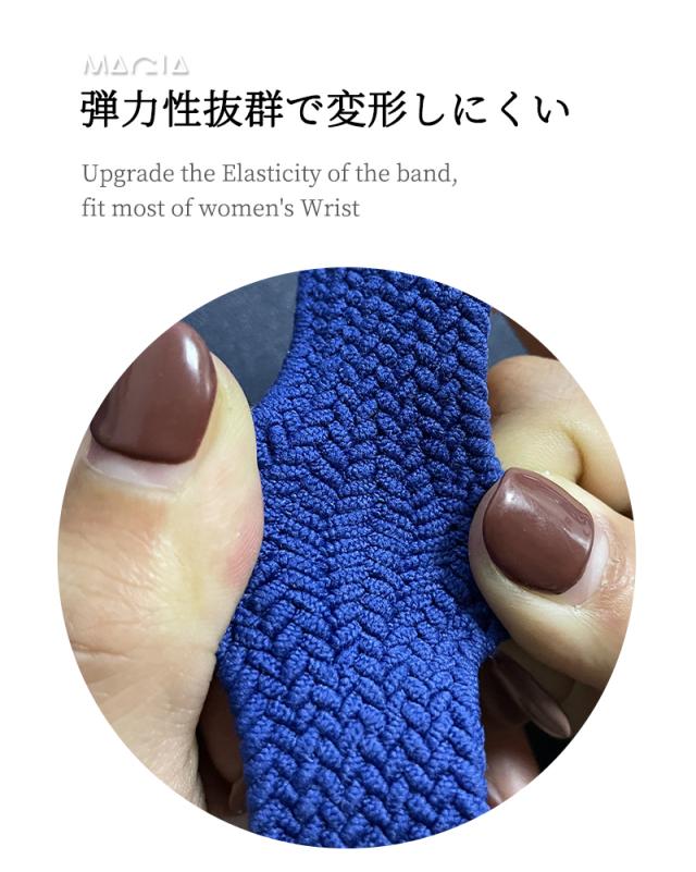 【極上の着け心地を追求】伸縮性のあるシリコーン糸混紡リサイクルヤーンを使用します。柔らかく、軽くてフィット感も良いです、着けていて楽チンなナイロンバンドです。Apple Watch本体に簡単に装着できます。