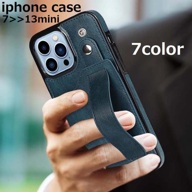 iPhoneケース スマホカバー 背面ベルト バンド カード収納 カードホルダー ポケット スタンド機能 リング付き PU レザ