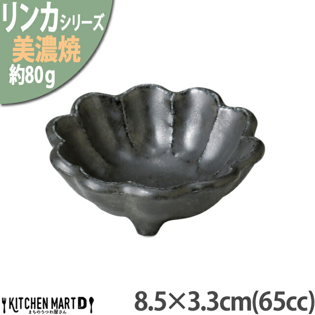 リンカ 黒練 8.5×3.3cm 丸 ボウル 美濃焼 和食器 カネコ小兵 約80g 65cc 日本製 輪花 rinka ブラック 黒い 和風 丸 丸い 皿 3つ足 食器 小鉢 お通し おかず おしゃれ 陶器 しのぎ 鎬 業務用 食洗器対応 レンジ対応 ラッピング不可