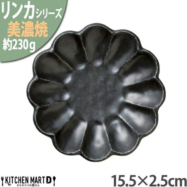 リンカ 黒練 15.5×2.5cm 丸皿 プレート 美濃焼 和食器 カネコ小兵 約230g 日本製 輪花 rinka ブラック 黒い 和風 丸 丸い 皿 食器 取り皿 サラダ 小皿 刺身皿 おしゃれ 陶器 しのぎ 鎬 業務用 食洗器対応 レンジ対応 ラッピング不可