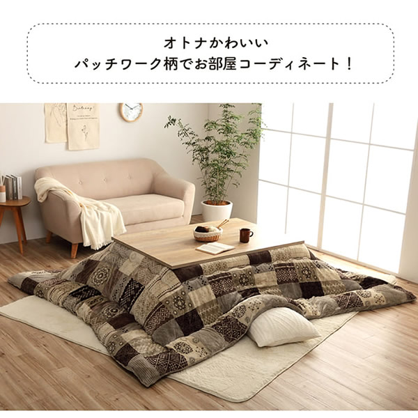 パッチワーク調で細かいデザインが特徴的なあったかこたつ布団。