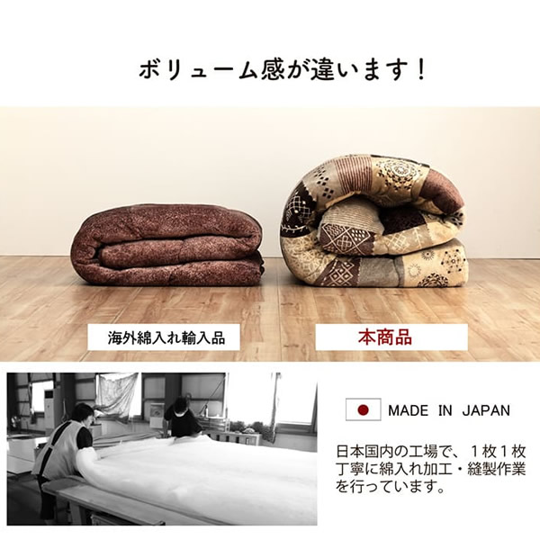 | 組成 | 表地=ポリエステル100% 裏地=ポリエステル100% 中材=ポリエステル100%(綿量1.5kg) |