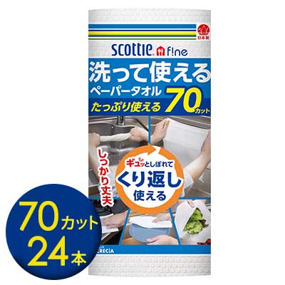 クレシア スコッティ ファイン 洗って使える ペーパータオル たっぷり使える 70カット 1ロール×24本 くり返し使える 送料無料 00771