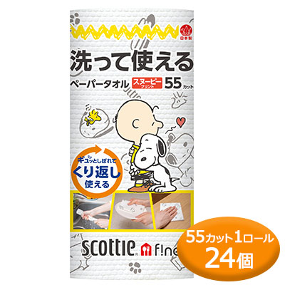 [取寄] スコッティファイン 洗って使える ペーパータオル スヌーピー プリント 55カット 1ロール ×24個 scottie 送料無料 00787