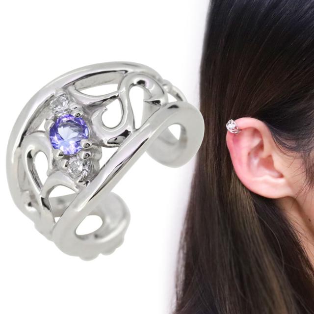 ノンホールピアス イヤーカフ レディース 片耳用 イヤカフ プラチナ タンザナイト 唐草