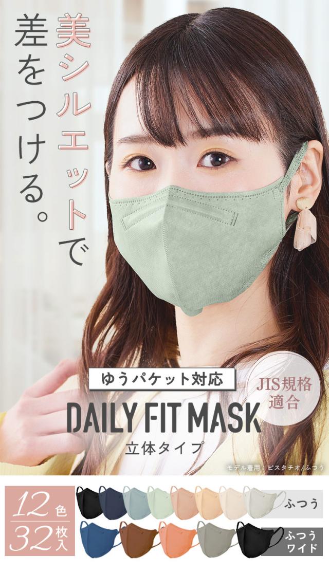 マスク 不織布 立体 カラーマスク 血色マスク アイリスオーヤマ DAILY FIT MASK ふつうサイズ 32枚入 RK-D32M 全5色 DAILY FIT MASK 大容量 花粉 カラーマスク