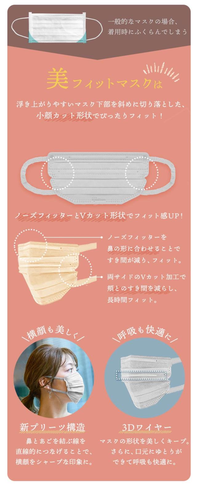 美しい形状とやさしい着け心地はそのままに小顔を叶える、美フィットマスク3つの形状。