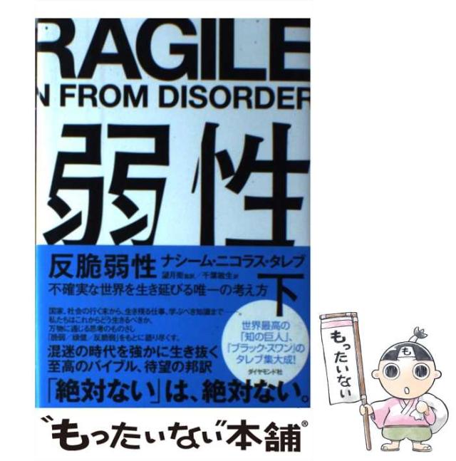 商品名:【中古】 反脆弱性 不確実な世界を生き延びる唯一の考え方 下 / ナシーム・ニコラス・タレブ、望月衛 / ダイヤモンド社 [単行本]【メール便送料無料】