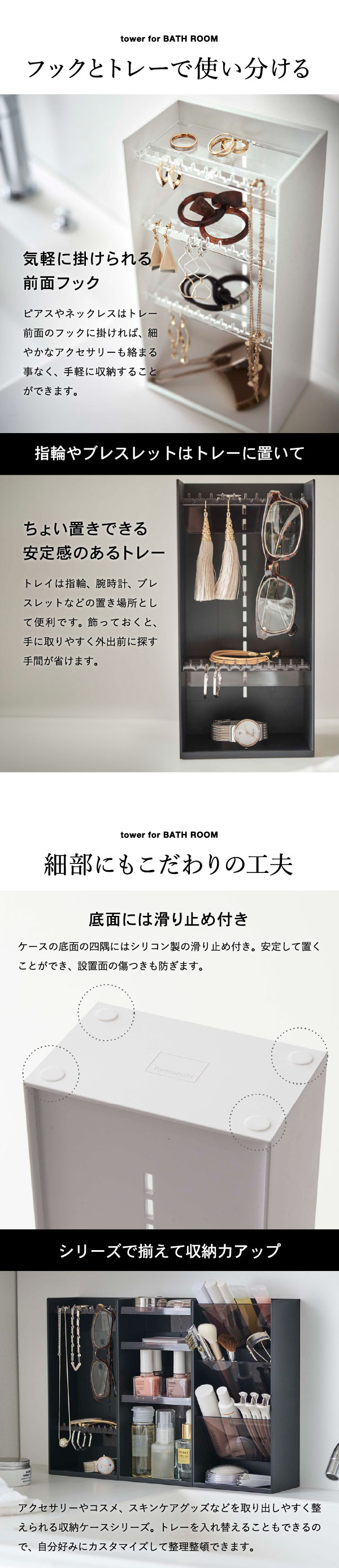 tower 山崎実業 タワー アクセサリー収納ケース 4段 ホワイト ブラック 5599 5600 アクセサリーケース 指輪 ネックレス ピアス 時計 アクセサリー入れ 誕生日プレゼント