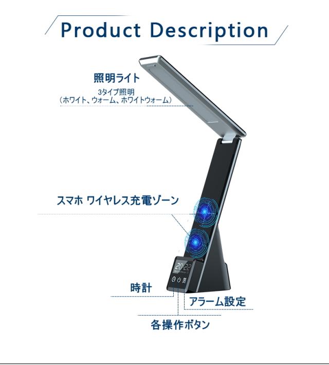 【簡単操作】時計操作、アラーム、LED照明、充電など