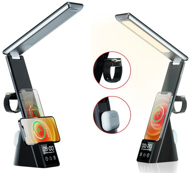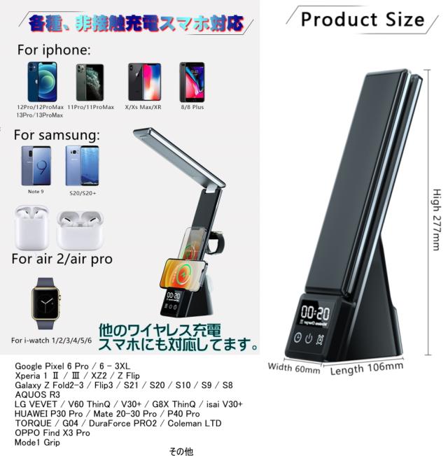 【送料無料・税込み】最新 マルチ ワイヤレス 充電器 6in1 非接触 充電 i-Phone Android スマホ スマートフォン アップルウォッチ apple watch エアー ポッズ air pods pro LED ライト 照明 時計 アラーム ランキング 売れてる 人気 おすすめ Google Pixel Xperia Galaxy AQU