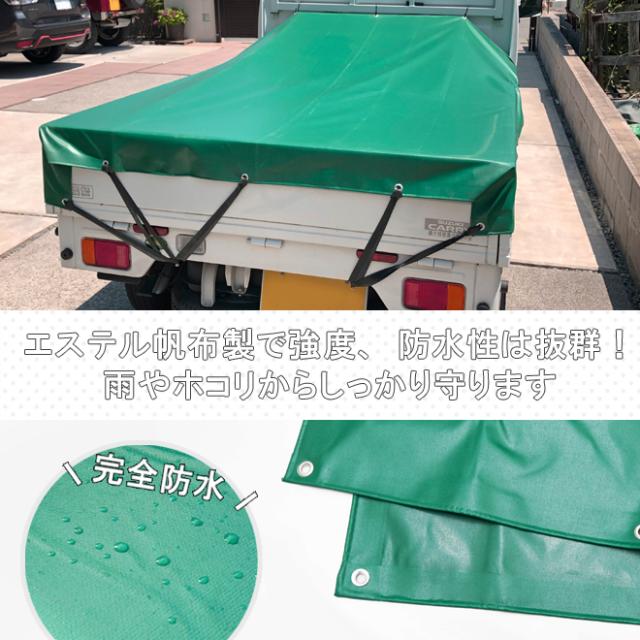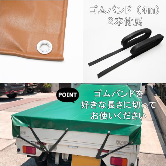 トラックシート 1.9×2.1m 1号 ゴムバンド2本付き 軽トラック 平張り用 荷台カバー 荷台シート エステル帆布 完全防水 強度抜群 グリーン ブラウン KIKAIYA (GOM-TS-2)