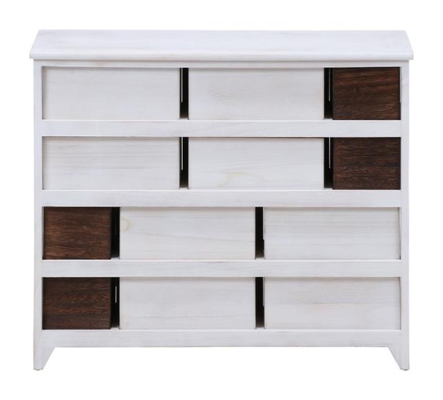 天然木の桐と杉を使用した手作りのチェストです。ホワイトウォッシュ塗装で、おしゃれなアンティークテテイストに仕上げております。引き出しは全部で12杯あり、お部屋の小物をたっぷりと収納可能です。