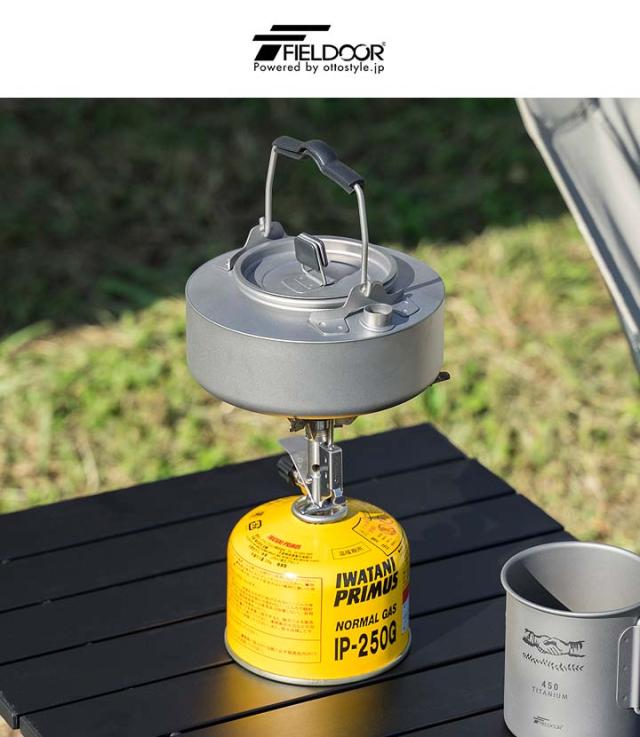 FIELDOOR チタンケトル 700ml 約14.5cm チタン製 軽量 コンパクト 直火 やかん ポット 湯沸かし キャンピングケトル 小型 フラット 料理 クッカー ケットル キャンプ飯 焚き火 焚火 調理器具 コーヒー ソロキャンプ 登山 アウトドア用品 送料無料