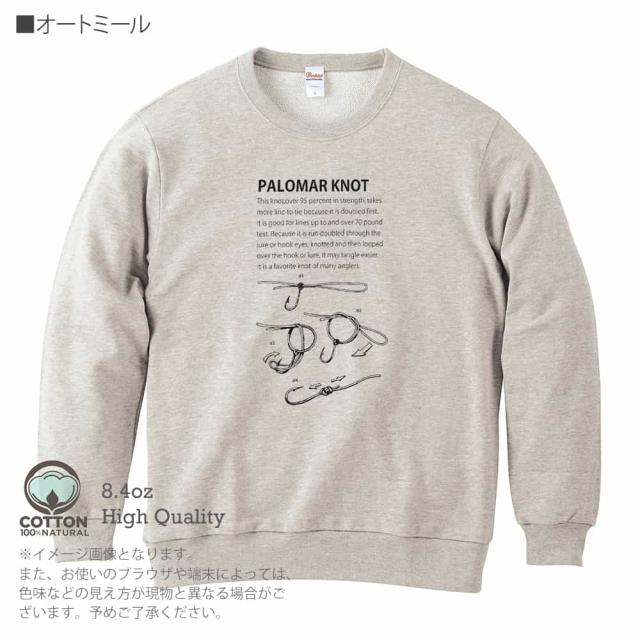 釣り トレーナー 長袖 パロマーノット8.4oz (オンス) 綿100% メンズ レディース 洗濯 大きいサイズ ホワイト ブラック ディープ ネイビー オートミール 白 黒 紺色 春 秋 冬 オシャレ 釣り 魚 ルアー