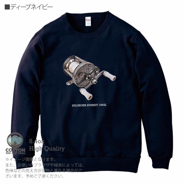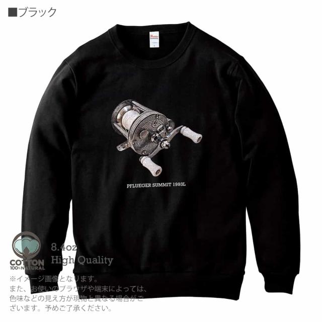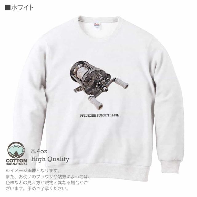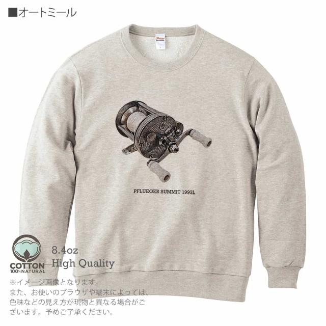 釣り トレーナー 長袖 ビンテージリール28.4oz (オンス) 綿100% メンズ レディース 洗濯 大きいサイズ ホワイト ブラック ディープ ネイビー オートミール 白 黒 紺色 春 秋 冬 オシャレ 釣り 魚 ルアー