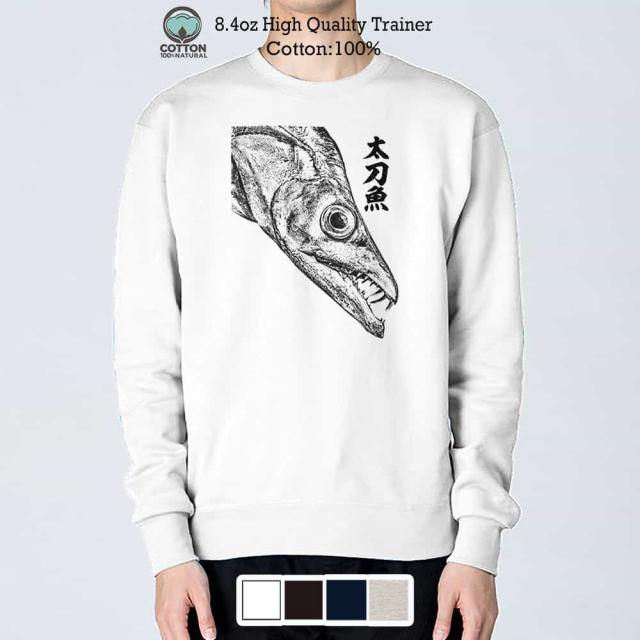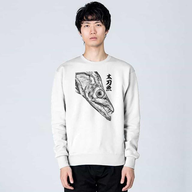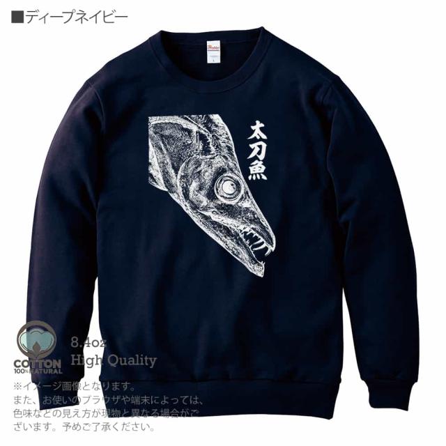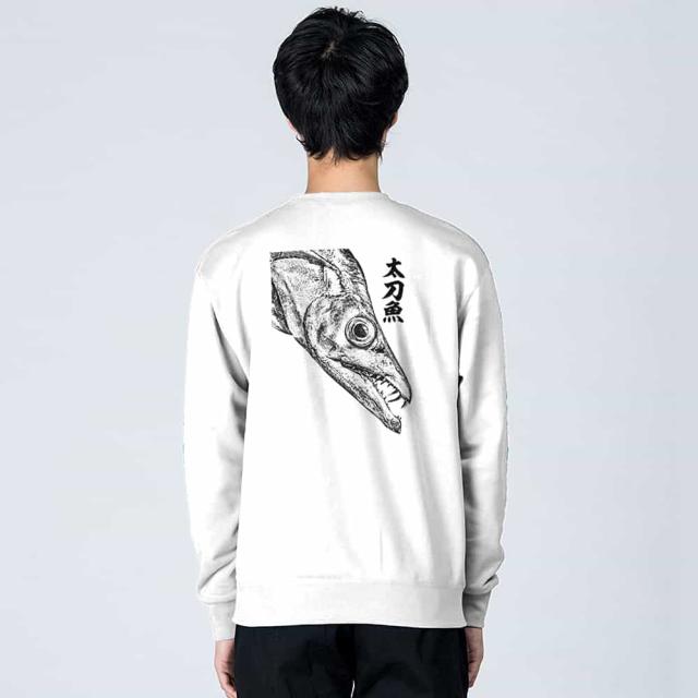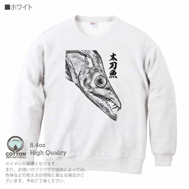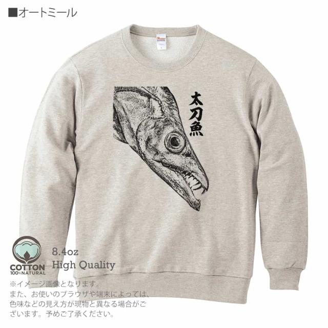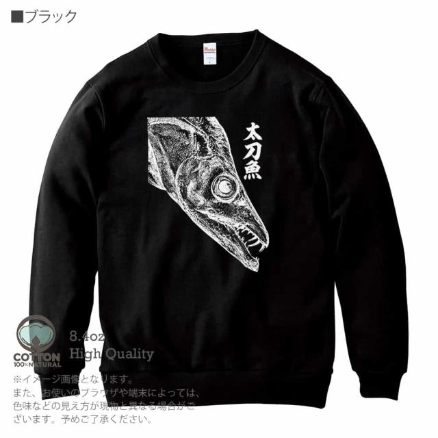 釣り トレーナー 長袖 タチウオ 墨絵風8.4oz (オンス) 綿100% メンズ レディース 洗濯 大きいサイズ ホワイト ブラック ディープ ネイビー オートミール 白 黒 紺色 春 秋 冬 オシャレ 釣り 魚 ルアー
