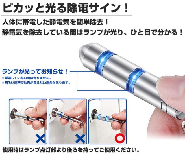 静電気除去 キーホルダー キーリング キーチェーン 車 光る ドアノブ ドア 静電気 対策 冬 2連