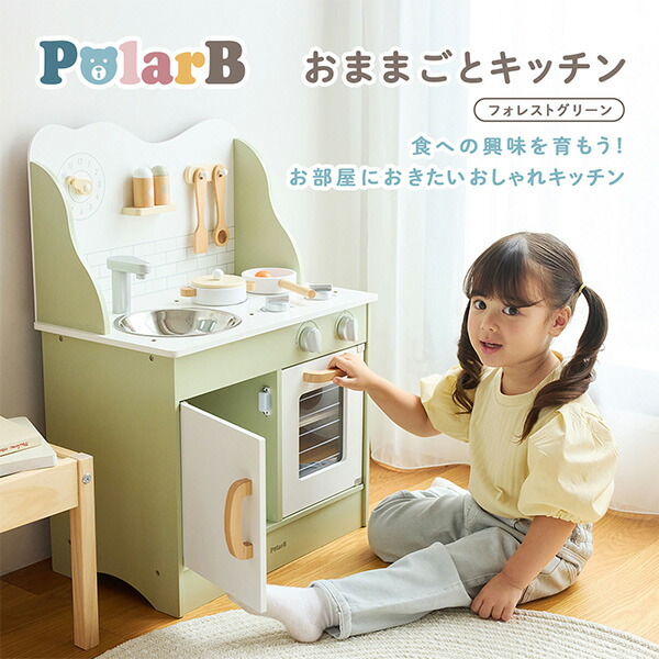 おままごとキッチン フォレストグリーン 木製 キッチン 対象年齢:3才から TYPR44048N ごっこ遊び ままごとセット 知育玩具 玩具 おもちゃ キッズ プレゼント ギフト 贈り物 おしゃれ ポーラービー Polar B 【送料無料】
