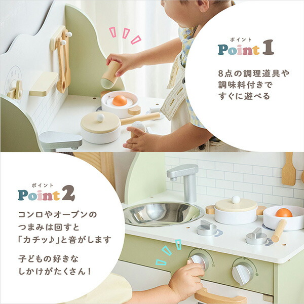 | 商品説明 | ●お部屋に置きたいおしゃれなおままごとキッチン ●コンロのツマミはきちんと動かせます ●シンク下はたっぷり収納スペースでお片付けもばっちり ●フライパンや目玉焼き、塩コショウなどたくさんのアイテムを使っておままごとを満喫できます ●対象年齢:3歳から ※こちらの商品は、2024年12月16日より下記変更をしております ・型番:TYPR44048→TYPR44048N ・カラー:グリーン→フォレストグリーン |