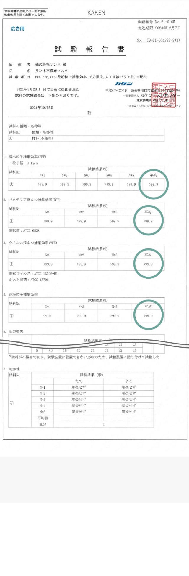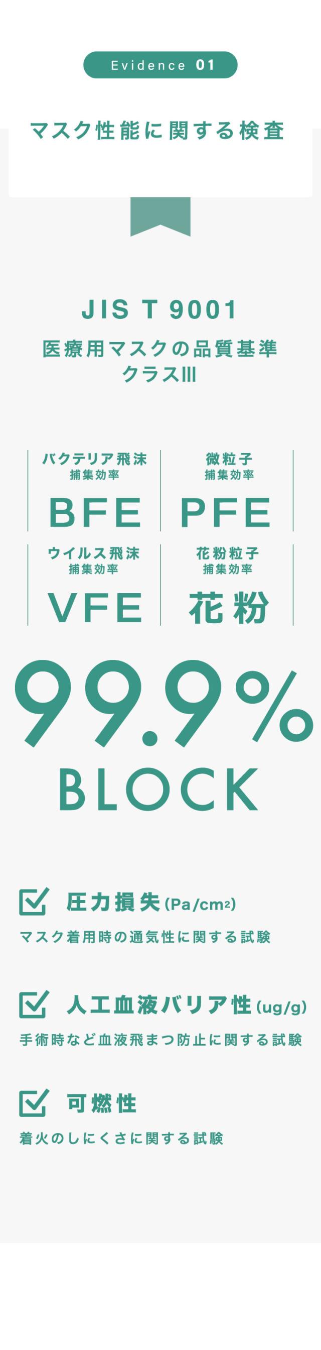 [1]PFE(微細粒子捕集効率)95%以上必要 ※99%以上の検査結果