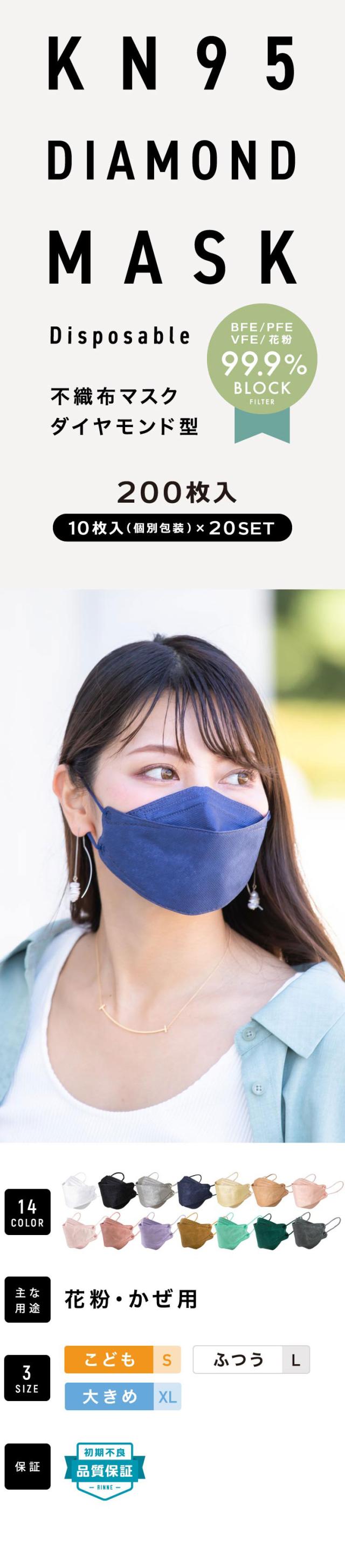 不織布マスク 200枚 立体 ダイヤモンド型 大きめ ふつう こども