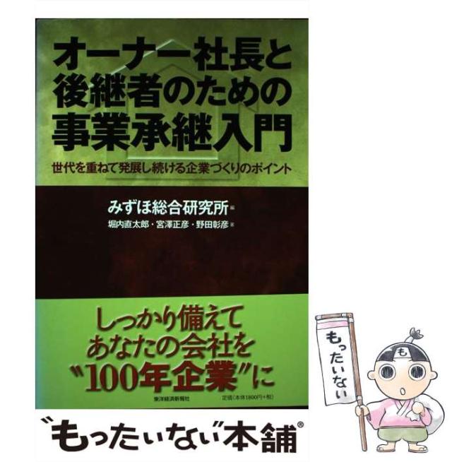 【中古】 オーナー社長と後継者のための事業承継入門 世代を重ねて発展し続ける企業づくりのポイント / みずほ総合研究所、堀内直太郎 宮澤正彦 野田彰 / [単行本]【メール便送料無料】