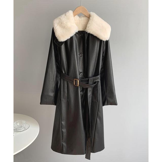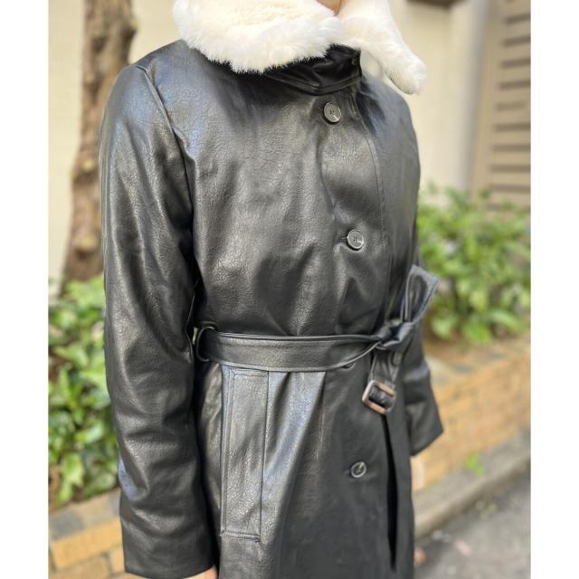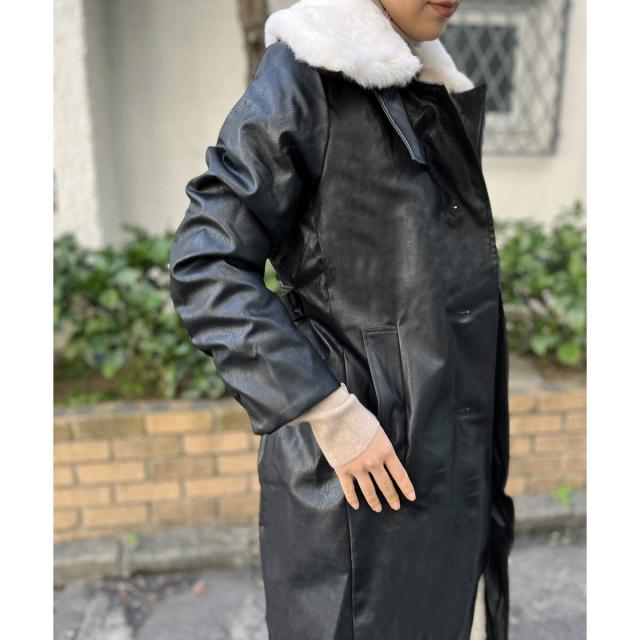 ジュエローブ/インナーファーフェイクレザーロングコート