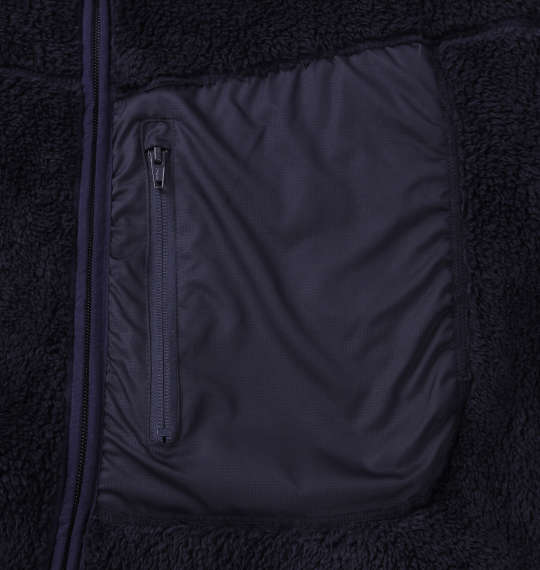 胸(ファスナー付)・サイドポケット有/ボア/フリース/フルジップ/スタンドカラー/袖口ゴム/裾調節スピンドル/ストレッチ/消臭/静電気軽減/吊りテープ/吸湿発熱