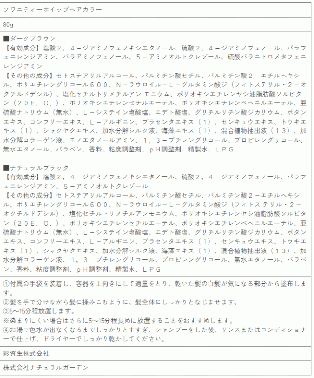 | 白髪染め,白髪染,泡,泡カラー,染毛剤,白髪,ホイップカラー,ホイップ,プレゼント,敬老の日,女性用,男性用,男性,女性,メンズ,レディース,50代,60代,70代,40代,30代,良く染まる,染まる,染まりが良い,ソワ,ソワニティ,ソワニティー,ヘアサロン級,サロン級,5分,早染め,臭くない,傷まない,髪が傷まない,脱色剤不使用,脱色剤フリー,医薬部外品,薬用,永久染毛剤,ノンシリコン,紫外線吸収剤フリー,界面活性剤フリー,過酸化水素水フリー,ジブチルヒドロキシトルエン不使用,送料無料 |