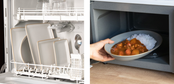 食器洗い乾燥機、電子レンジに対応しているので、お料理の温め直しや毎日のお手入れもラクラクです。