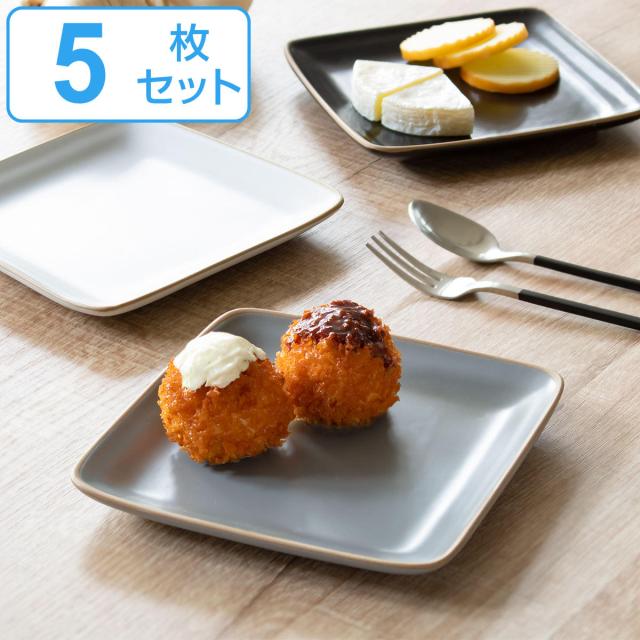 プレート 14cm スクエアプレート エッジライン 陶器 同色5枚セット ( 食洗機対応 電子レンジ対応 皿 角皿 中皿 四角 取り皿 お皿 取皿 サラダ ケーキ デザート パン ライス 副菜 おしゃれ マット カラー スクエア セット 5枚セット )