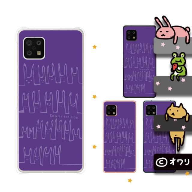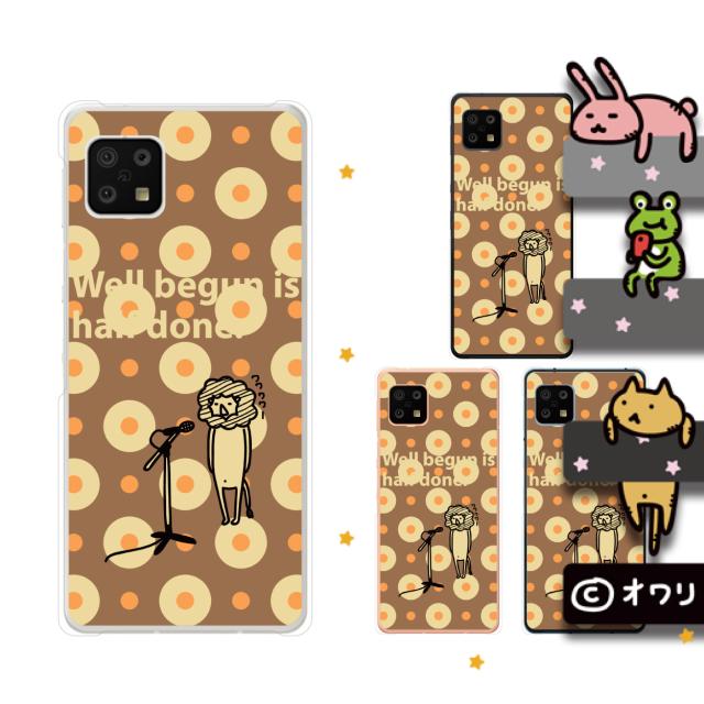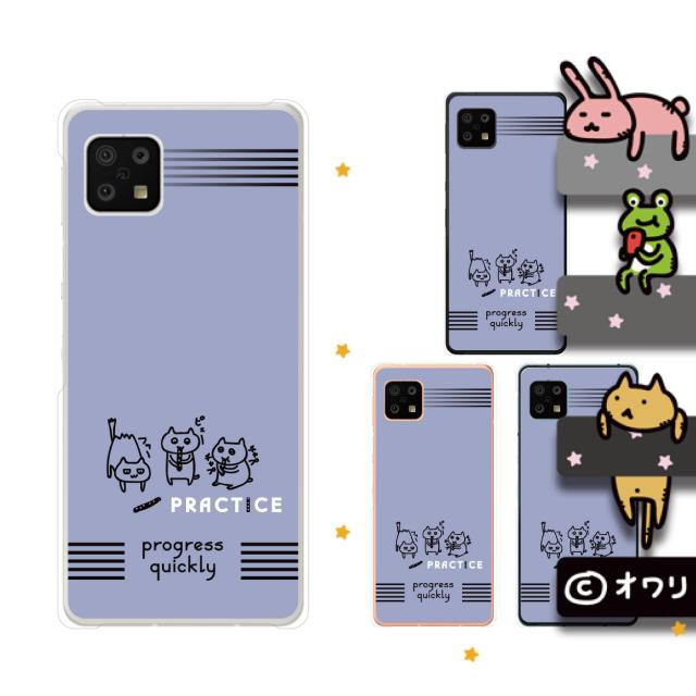 AQUOS sense6 (au SHG05 / docomo SH-54B) スマホ ケース ハード カバー オワリ 「ネコのリコーダー練習」 グレー