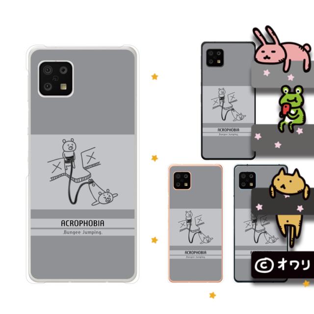 AQUOS sense6 (au SHG05 / docomo SH-54B) スマホ ケース ハード カバー オワリ 「クマのバンジージャンプ」 グレー