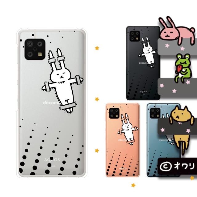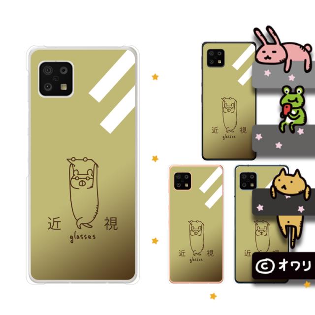 AQUOS sense6 (au SHG05 / docomo SH-54B) スマホ ケース ハード カバー オワリ 「ウサギに囲まれる・メガネver.」 ブラック